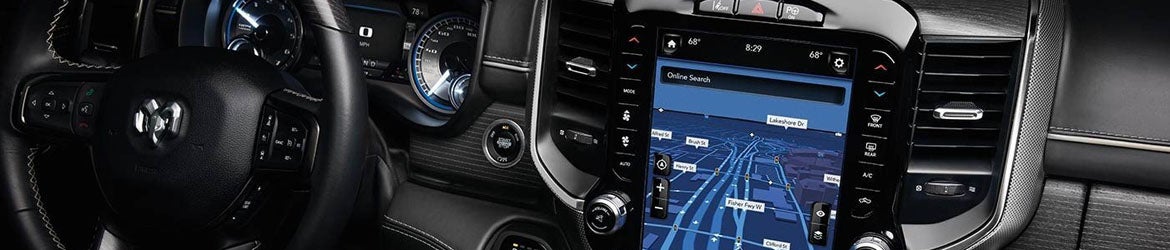 The Tradesman trim comes with cloth or vinyl upholstery, several USB ports, and the Uconnect infotainment system with a 5-inch touch screen display. The Big Horn adds a leather-wrapped steering wheel, while the Laramie includes heated, ventilated, and power-adjustable front seats, as well as an 8.4-inch touch screen display. With the Rebel, you gain satellite radio and a power outlet, while the Laramie Longhorn features premium leather upholstery and HD radio. The Limited trim has a 12-inch touch screen display and wireless device charging.