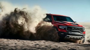 Feel the power and thrill of the Ram 1500 TRX off-road-ready pickup truck. This adrenaline-filled truck features a 6.2-liter supercharged V-8 HEMI engine that delivers a massive 702 horsepower and 650 pound-feet of torque. Full-time four-wheel drive powers the wheels for maximum traction on uneven and rugged off-road terrain. This special edition Ram 1500 has 11.8 inches of ground clearance, 13-inches of front suspension travel, and 18-inch wheels holding rugged 35-inch all-terrain tires.