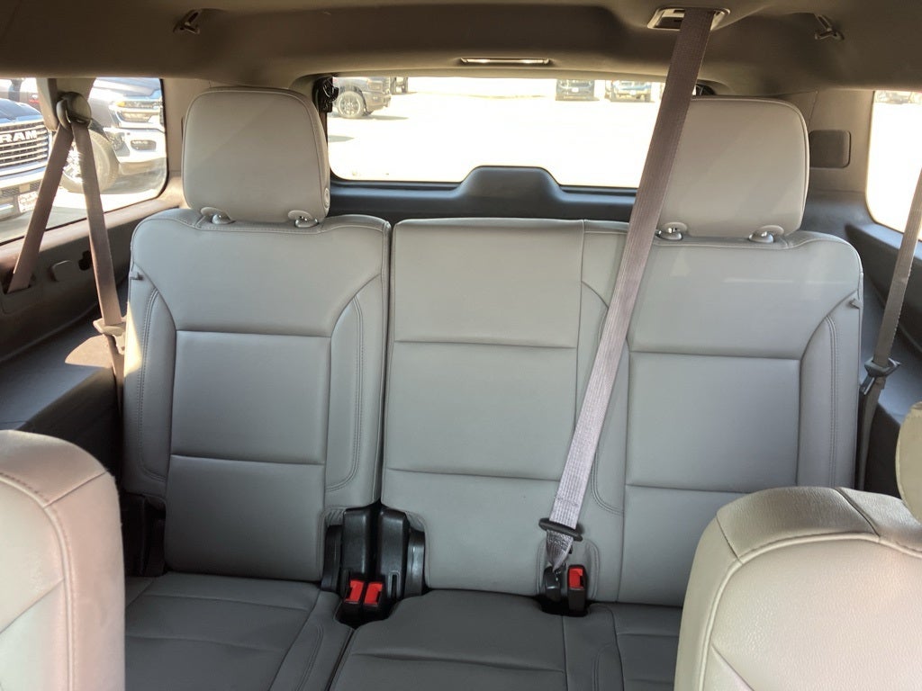 License Plate Front Mounting Package, Preferred Equipment Group 2Z7 (10-Way Power Driver & Passenger Seat Adjusters, 1st & 2nd Row Color-Keyed Carpeted Floor Mats, 2-Speed Active Electronic AutoTrac Transfer Case, Auto-Dimming Inside Rear-View Mirror, Automatic Stop/Start, Black Tubular Assist Steps, Bose 9-Speaker Stereo Audio System Feature, Bright Front & Rear Door Sill Plates, Color-Keyed Carpeting Floor Covering, Driver & Front Outboard Passenger Airbags, Enhanced Driver Information Center, Floor Console w/Storage Area, Front & Rear Park Assist, Front High-Approach Angle Fascia, Hands-Free Rear Power Programmable Liftgate, Heated Driver & Front Passenger Seats, Hill Descent Control, Infotainment Display, Leather-Wrapped Steering Wheel, LED Daytime Running Lamps, Memory Settings For Driver, Red Recovery Hooks, Remote Start, SiriusXM Radio w/360L, Start/Stop System Disable Button, Universal Home Remote, and Wireless Charging), 2nd Row Manual Bucket Seats, 3.23 Rear Axle Ratio, 3rd row seats: split-bench, 4-Wheel Disc Brakes, 9 Speakers, ABS brakes, Air Conditioning, Alloy wheels, AM/FM radio: SiriusXM with 360L, Apple CarPlay/Android Auto, Auto High-beam Headlights, Auto-dimming Rear-View mirror, Automatic temperature control, Brake assist, Bumpers: body-color, Compass, Delay-off headlights, Driver door bin, Driver vanity mirror, Dual front impact airbags, Dual front side impact airbags, Electronic Stability Control, Emergency communication system: OnStar and Chevrolet connected services capable, Four wheel independent suspension, Front anti-roll bar, Front Bucket Seats, Front Center Armrest, Front dual zone A/C, Front reading lights, Fully automatic headlights, Garage door transmitter, Heated door mirrors, Heated front seats, Illuminated entry, Leather steering wheel, Leather-Appointed Seating, Low tire pressure warning, Memory seat, Navigation System, Not Equipped w/Front & Rear Park Assist, Not Equipped w/Steering Column Lock, Occupant sensing airbag, Outside temperature display, Overhead airbag, Overhead console, Panic alarm, Passenger door bin, Passenger vanity mirror, Power door mirrors, Power driver seat, Power Liftgate, Power passenger seat, Power steering, Power windows, Premium audio system: Chevrolet Infotainment 3 Premium, Premium Smooth Ride Suspension, Radio: Chevrolet Infotainment 3 Premium System, Rain sensing wipers, Rear air conditioning, Rear anti-roll bar, Rear reading lights, Rear seat center armrest, Rear window defroster, Rear window wiper, Remote keyless entry, Roof rack: rails only, Security system, Speed control, Speed-sensing steering, Split folding rear seat, Spoiler, Steering wheel mounted audio controls, Tachometer, Telescoping steering wheel, Tilt steering wheel, Traction control, Trip computer, Variably intermittent wipers, Voltmeter, and Wheels: 20 x 9 Machined Aluminum.