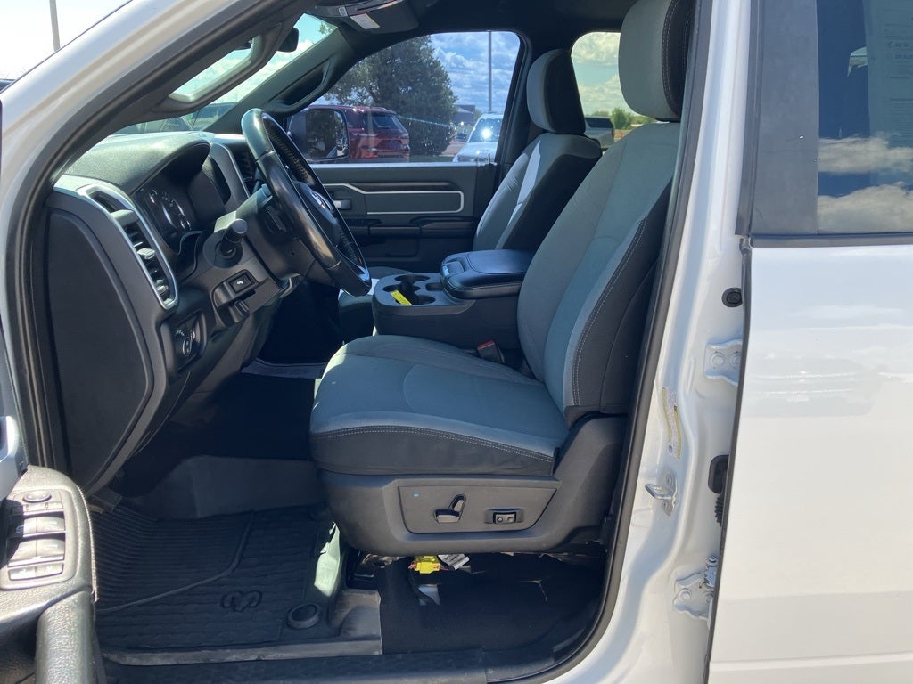 Cold Weather Group (Engine Block Heater), Heavy Duty Snow Plow Prep Group (220 Amp Alternator), Level 1 Equipment Group (DISC) (2 Way Rear Headrest Seat, 4 Way Front Headrests, 40/20/40 Split Bench Seat, Auto-Dimming Rear-View Mirror, Big Horn IP Badge, Center Hub, Center Stack Storage Drawer, Foam Bottle Insert (Door Trim Panel), Footwell Courtesy Lamp, Front Armrest w/Cupholders, Front Center Seat Cushion Storage, Front Fog Lamps, Locking Lower Glove Box, Power Adjust 8-Way Driver Seat, Power Folding Mirrors, Premium Cloth 40/20/40 Bench Seat, Rear 60/40 Folding Seat, Steering Wheel Mounted Audio Controls, Storage Tray, Sun Visors w/Illuminated Vanity Mirrors, Universal Garage Door Opener, and Wheels: 18 x 8.0 Polished Aluminum), Quick Order Package 2HZ Big Horn, 3.73 Axle Ratio, 4-Wheel Disc Brakes, 4G LTE Wi-Fi Hot Spot, 6 Speakers, 8.4 Touchscreen Display, ABS brakes, Active Noise Control System, Air Conditioning, AM/FM radio: SiriusXM, Apple CarPlay, Apple CarPlay/Android Auto, Blind Spot & Cross Path Detection (DISC), Bluetooth® Handsfree Phone & Audio, Brake assist, Bumpers: chrome, Chrome Flat Cab-Length Side Steps, Cloth 40/20/40 Bench Seat, Compass, Connectivity - US/Canada, Delay-off headlights, Driver door bin, Dual front impact airbags, Dual front side impact airbags, Electronic Stability Control, Electronically Controlled Throttle, Front anti-roll bar, Front Center Armrest w/Storage, Front License Plate Bracket, Front reading lights, Fully automatic headlights, Global Telematics Box Module (TBM), Google Android Auto, GPS Antenna Input, Heated door mirrors, Illuminated entry, Integrated Center Stack Radio, Integrated Voice Command w/Bluetooth®, LED Tail Lamps, Low tire pressure warning, Manual Adjust 4-Way Driver Seat, Manufacturer's Statement of Origin, MOPAR Front & Rear Rubber Floor Mats, MOPAR Spray In Bedliner, Occupant sensing airbag, Outside temperature display, Overhead airbag, Overhead console, Panic alarm, ParkSense Front/Rear Park Assist System, ParkView Rear Back-Up Camera, Passenger door bin, Passenger vanity mirror, Power door mirrors, Power steering, Power windows, Radio data system, Radio: Uconnect 5 W w/8.4 Display, Rear anti-roll bar, Rear Folding Seat, Rear seat center armrest, Rear step bumper, Rear Window Defroster, Remote keyless entry, Selectable Tire Fill Alert, SiriusXM Radio Service, SiriusXM Satellite Radio, Speed control, Tachometer, Tilt steering wheel, Tip Start, Tow Hooks, Traction control, Trip computer, Turn signal indicator mirrors, Variably intermittent wipers, Vendor Painted Cargo Box, Vendor Painted Cargo Box Tracking, Voltmeter, and Wheels: 18 x 8.0 Steel Chrome Clad.
